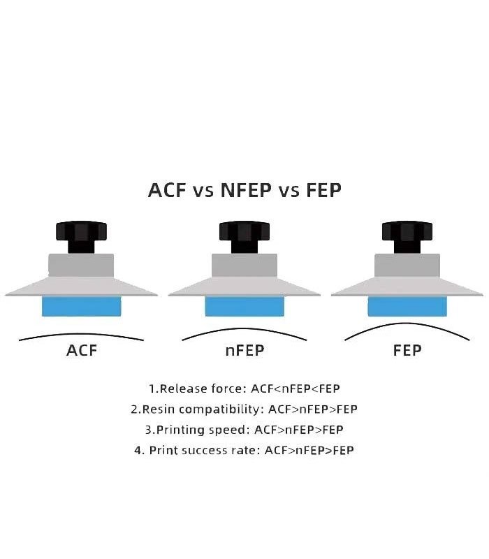 If you are aiming for maximum speed and performance, ACF Release Film for Resin 3D Printers is the best option. If you want a balance between cost and performance, nFEP is a solid upgrade over FEP. For basic use, standard FEP remains acceptable but less efficient.